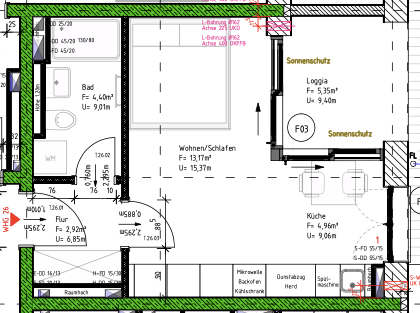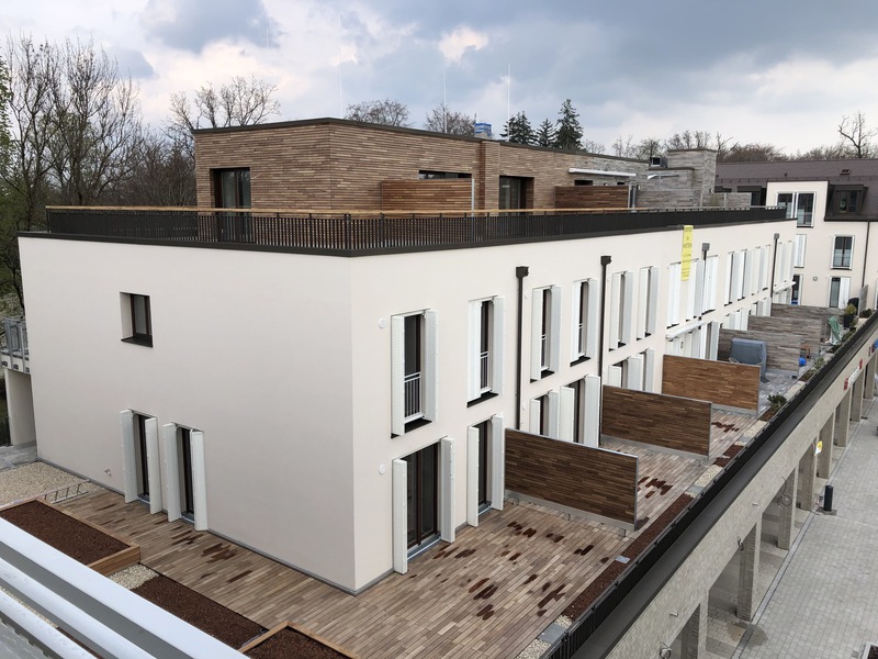 In diesem Ensemble gibt es 43 Wohnungen und sieben Stadthäuser. Die Wohnungen werden im Mai 2021 bezugsfertig. Direkt vor ihrer Tür finden Sie alles für die tägliche Nahversorgung. Super- und Drogeriemarkt, Apotheke, Bäcker/Café, Frisör, Postshop und ein Ärztezentrum mit Allgemeinmediziner, Zahnarzt, Kinderarzt, Gynäkologin und Osteopathin.