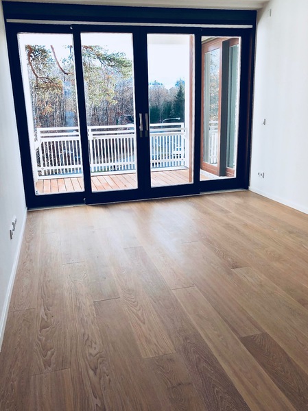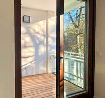 Lichtdurchflutet, hell und freundlich sind die Räume der 3 Zi. Wohnung mit ihren bodentiefen Fenstern und den weißen Klappläden von außen. Von zwei Wohnräumen (Wohnzimmer und 3. Zimmer) betreten Sie die Loggia im 2. OG oder die große Terrasse im 1. OG durch eine Schiebetür. Dort findet der Gärtner Platz für seine Anpflanzungen oder der Sonnenanbeter für seine Relaxliege.