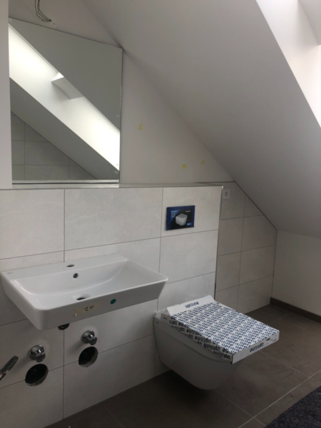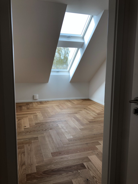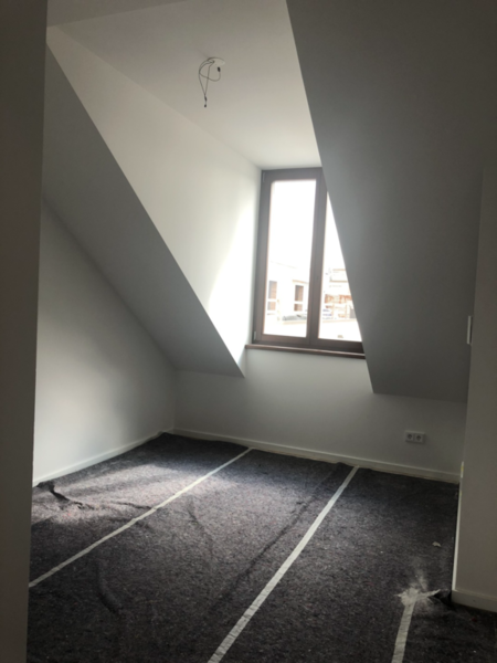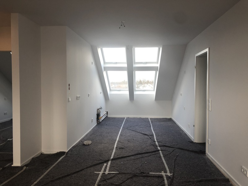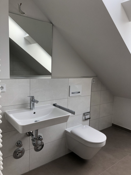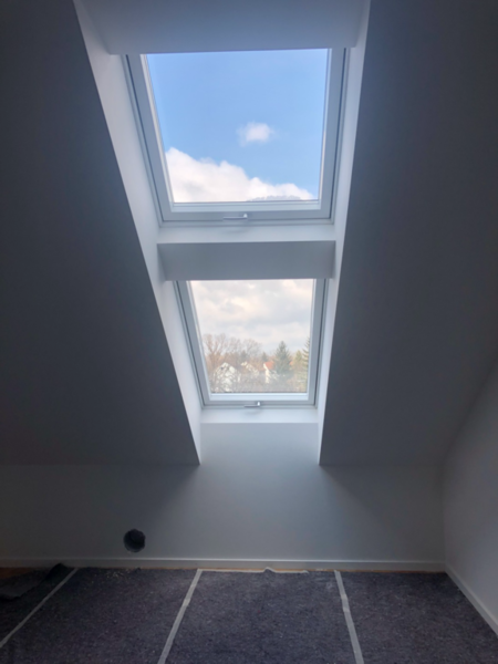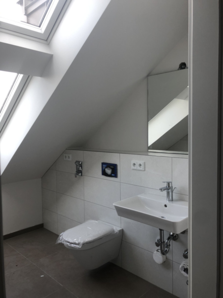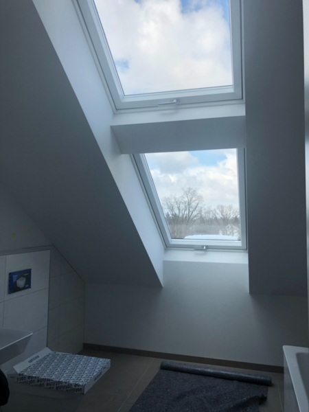 Hell und lichtdurchflutet sind die Dachgeschosswohnungen durch ihre großen Dachflächenfenster, die von der Decke bis in den Kniestock reichen. Auf der anderen Seite der Wohnung befindet sich im Wohnraum eine große bodentiefe Schiebetür und in dem 3. Zimmer eine Gaube. Die Wohnungen haben alle zwei Bäder mit WC.
